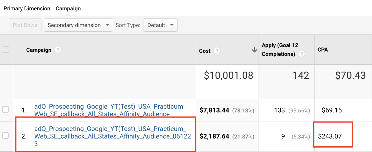 From there, the system takes over — using its algorithm to find users most likely to convert into program enrollments at or below our target CPA.